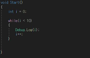 이 증감식이 빠지게 되면 식은 계속 참이되고 무한으로 구문을 실행하여 Unity로 실행하게 되면 프로그램이 멈추게 되니